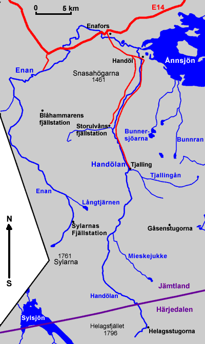 Helagsfjället in the province of Härjedalen. Flows out into lake Ånnsjön. Upstream