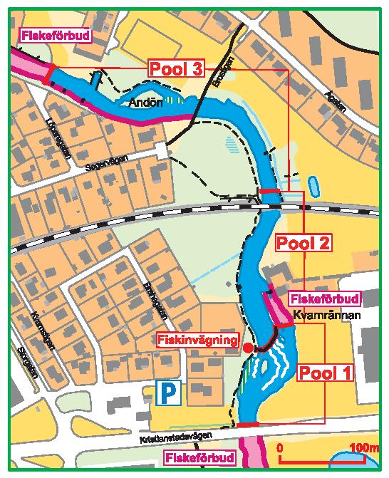 anöker om dem via mail En del av fiskesträckan är handikapptillgänglig. Grillplatser finns iordningställda.