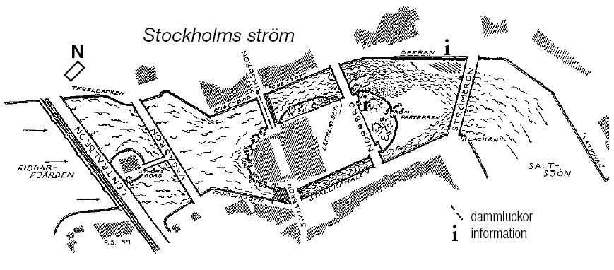 Ett unikt fiske mitt i Stockholms stad. Lokalt kallas ''Strömmen''. Stockholmsström erbjuder ett spännande fiske i en ovanlig fiskemiljö. Ett 30-tal fiskarter gör "Strömmen" till det artrikaste vattnet i Stockholmsregionen. Mest känt är fisket efter lax på sommaren och havsöring under höst, vinter och vår. Varje år fångas stora mängder havsöring och ett mindre antal laxar. En bra vattenföring ökar förutsättningarna för ett lyckat fiske efter lax och öring. Fiskeområdet sträcker sig från Riddarfjärden ända ut till Djurgården. Fiskemiljön är varierande med hårt strömmande vatten mellan broarna inne i stan, när så tillåts. Medan fisket på Skeppsholmen och Djurgården påminner mer om kustfiske. Havsöringen kan man praktiskt taget fiska året runt med undantag av någon enstaka sommarmånad. Den bästa tiden är från september till en bit in i juni. Havsöringen i Strömmen är storvuxen och det fångas öringar på över 10 kg varje år. Laxen är svårare att komma i kontakt med, då vattenföringen sällan tillåter fiske i strömmande vatten under sommaren när laxen börjar att stiga. De flesta laxar fångas under höstfisket i lekdräkt och bjuder inte på samma fina kvalitet som om de fångats som nystigna under sommaren. Abborre, gös och gädda fångas framför allt under senvinter fram till sommaren. Mete i olika former är de vanligaste fångstmetoderna. Det fångas havsöring och lax på det mesta i sportfiskeredskapsväg i Strömmen. De vanligast förekommande metoderna är dock spinnfiske med spinnfluga, drag, vobbler eller naturligt agn på kroken. Under den kalla årstiden är mete med betesfisk och räka mycket givande. För flugfiskaren är platserna begränsade. Vadning är möjlig utmed muren i Norrström, norra Strömsborg samt på grusörat av Strömparterren. En hel del flugfiske bedrivs även ute på Skeppsholmen och Djurgården. Flugfiske från flytring är en metod på stark frammarsch. Några kända fiskeplatser är Fisket med handredskap är fritt. För mer info om fisket i Strömmen kontakta FK Strömstararna, denna föreningen har massor med erfarenhet av praktiskt fiske från Strömmen En ny epok med lax och havsöring i Stockholms strömmar inleddes i maj 1973 när Stockholms idrottsförvaltning på försök satte ut 500 st 2-åriga havsöringssmolt nedanför Helgeandsholmen. När dessa öringar efter två års tillväxt i havet började återvända till vad dom uppfattade som sitt hemmavatten, gav dom upphov till en hel del fångster hos förvånade sportfiskare. Det lyckade försöket ledde till att utsättningar i större skala påbörjades 1976, bl a av Fiskeristyrelsen och Vattenfall.Stockholms fritidsförvaltning avsatte från 1980 särskilda pengar för utsättningar, som därmed fick en fastare grund. Senare år har Stockholms stad, Vattenfall och fiskeklubben Strömstararna satt ut ca 20 - 25 000 smolt per år. Föreningen FK Strömstararna har sedan början av 80-talet även ansvaret för fisketillsynen i Strömmen.